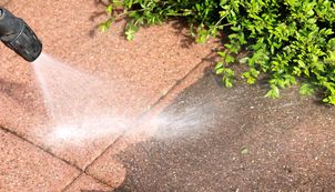 The cleaning solution is applied at low pressure and allowed to dwell on the surface before being gently rinsed away, leaving the area clean without the risk of damage. This makes it the preferred choice for delicate surfaces such as roof shingles, vinyl siding, wood decks, stucco, and painted surfaces, where high-pressure water could strip coatings, etch materials, or force moisture into unwanted places.